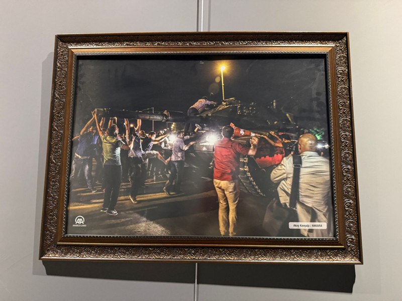 Tankların gölgesinde yürüyen halk ve hayatını kaybedenlerin son kareleri ziyaretçiler üzerinde derin izler bırakıyor. Kızılay Meydanı, TRT Genel Müdürlüğü, Kahramankazan Hamdi Eriş Devlet Hastanesi ve Ankara’nın pek çok noktasında o gece çekilen fotoğraflar birer kanıt niteliği taşıyor. Bir sivilin askerden silahını almaya çalışmasını kaydeden fotoğraf ise sergideki en çarpıcı fotoğraf olarak ön plana çıkıyor.