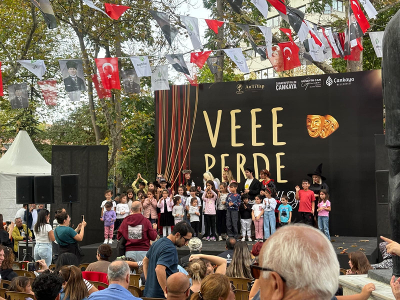 Ankara'nın özel tiyatroları, Ankara Tiyatro Yapımcıları Derneği (AnTiYap) ve Çankaya Belediyesi işbirliğiyle gerçekleşen "Veee Perde: Bir Tadımlık Oyunlar" etkinliği ile 2025-2026 sanat sezonuna "merhaba" dedi. Kuğulu Park'ta ücretsiz olarak düzenlenen etkinlikte, AnTiYap üyesi tiyatrolar sahne alarak yeni sezon oyunlarından kısa kesitler sundu. Çocuklar ve yetişkinler için masal kahramanları, müzik ve dansla dopdolu saatler yaşandı.