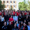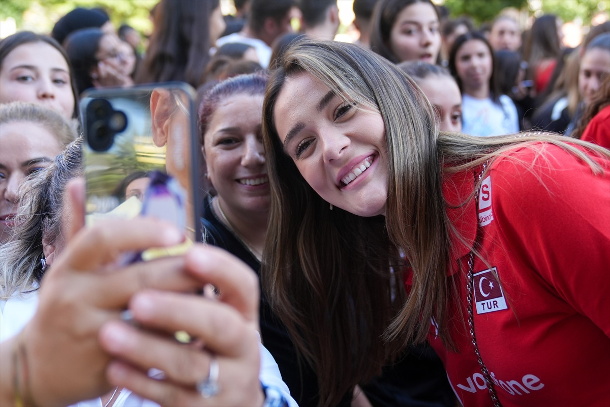 Çiçekle karşılanan milli takım oyuncularından Zehra Güneş, vatandaşlarla fotoğraf çektirdi.