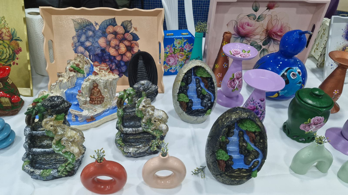Sergide el yapımı takılardan resimlere, bardak süslemelerinden el örgüsü çantalara ve dekoratif tepsilere kadar birçok farklı el sanatı örneği yer alıyor.