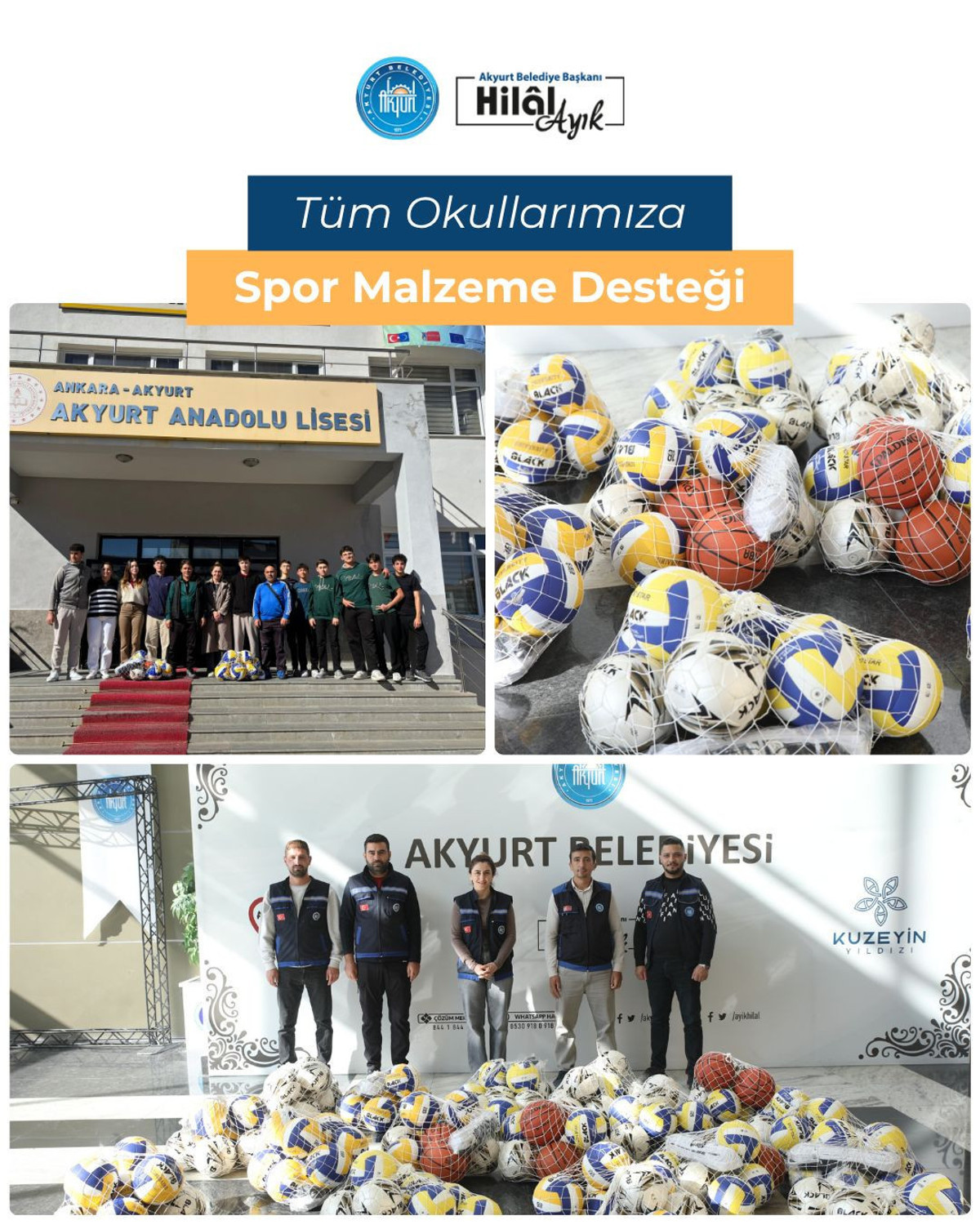 Akyurt Belediyesi tarafından konuyla ilgili sosyal medyadan yapılan paylaşımda ise, "Eğitim desteklerimizi sürdürüyoruz. Okullarımıza spor malzemesi desteği verdik. Öğrencilerimizin spora olan ilgisini artırmak ve fiziksel gelişimlerine katkı sağlamak amacıyla spor malzemelerinin dağıtımını tamamladık." ifadelerine yer verildi.