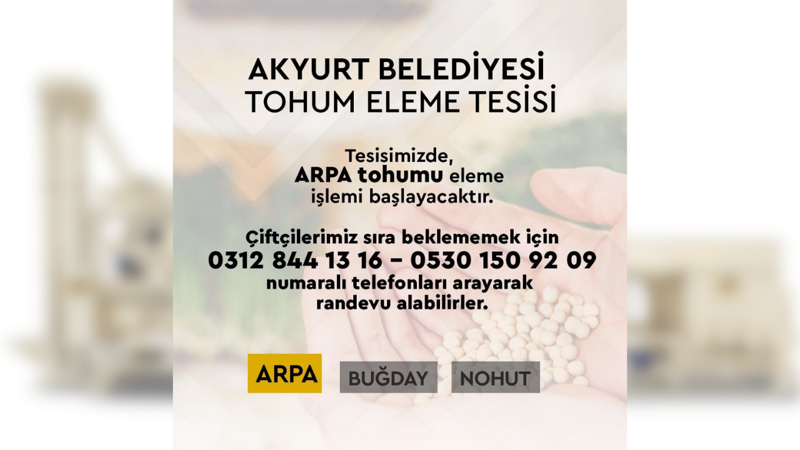 Akyurt Belediyesi, çiftçilere yönelik desteklerine Tohum Eleme Tesisi ile devam ediyor. Arpa tohumu için başlayan eleme işlemleri, ilerleyen süreçte nohut ve buğdayla genişletilecek. Üreticiler, randevu sistemi sayesinde sıra beklemeden hizmet alabilecek.