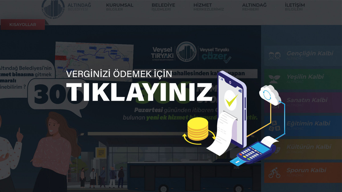 Altındağ Belediyesi emlak vergisi ile ilgili vatandaşlarına resmi internet sitesi üzerinden uyarıda bulundu. Altındağlılar belediyeye gitmeden, e-Devlet üzerinden emlak, çevre temizlik ve ilan-reklam vergilerini online olarak ödeyebiliyor.