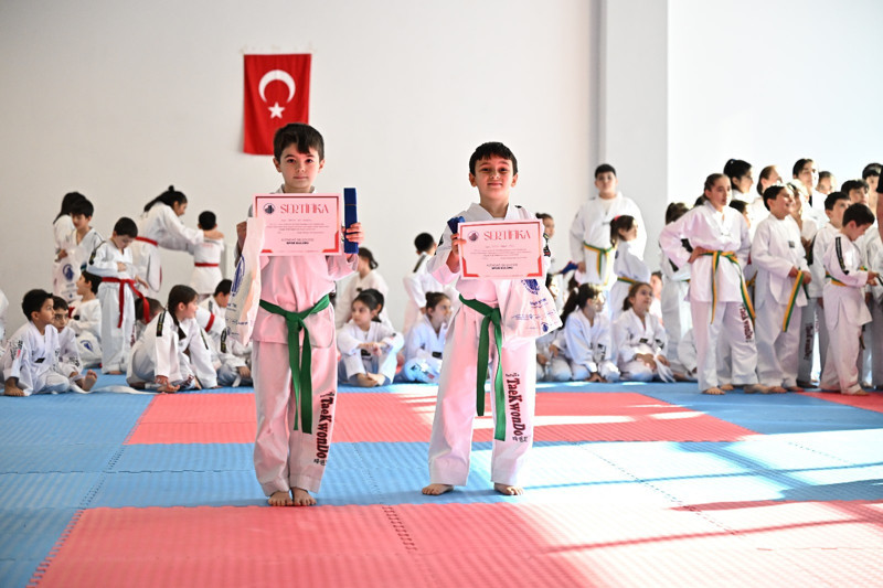 Bu özel günde, sporcuların sevinçlerine aileleri ve eğitmenleri de ortak oldu. Sertifika ve kuşaklarına kavuşan gençlerin mutluluğu gözlerden kaçmadı.