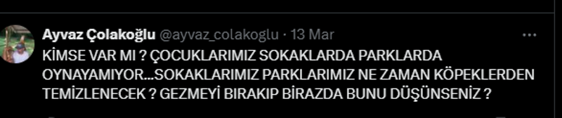 Özellikle sokak hayvanlarıyla ilgili yapılan şikayetlerin ne derece dikkate alındığı bilinmese de her geçen gün daha çok vatandaşın bu sorunu dile getirmeye çalıştığını, paylaşımların altındaki yorumlarda görmek mümkün.