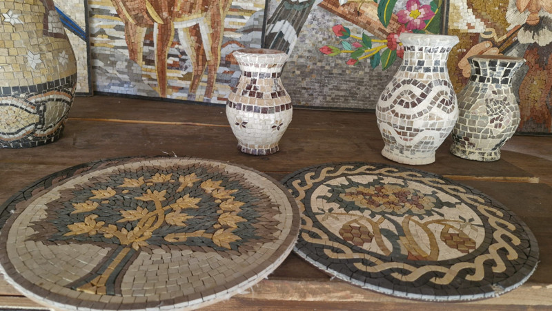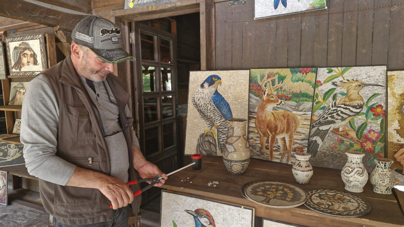Mozaik taşından eserler yaparken de öncelikle tasarım aşamasını kafamızda kuruyoruz. Bu biraz zaman alabiliyor. Örneğin bu sene kuş serisi hazırladım, burada çoğunlukla mermer kullandım. Daha sonra taşların renklerini de doğadaki taşlardan ilham alarak belirliyoruz. Bazı kuş figürlerinde yapay taş da kullandım. Yapay taşları yalnızca tasarıma görsel çeşitlilik katmak amacıyla kullanıyoruz. Tüm ürünlerimiz tamamen taştan yapılmıştır ve uzun süreli el emeğiyle ortaya çıkmıştır.