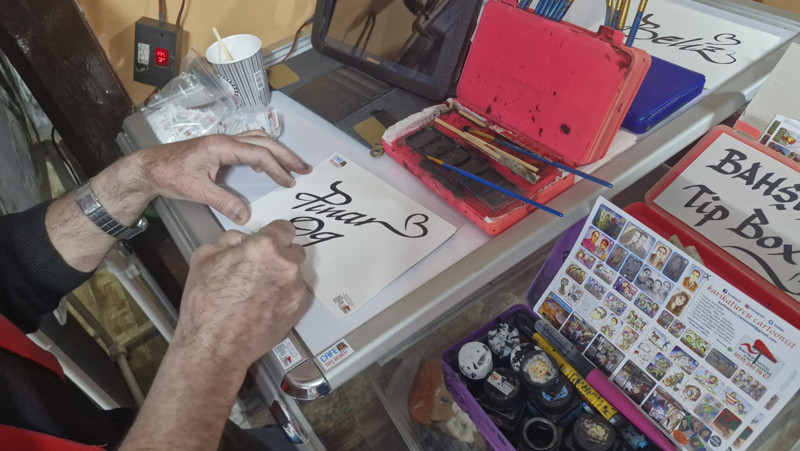 Bunun yanı sıra ziyaretçiler, kaligrafi sanatını kullanarak sevdiklerinin isimlerini zarif hatlarla yazdırmayı tercih etti. Bu sanatsal dokunuşlarla hazırlanan kartpostallar, hem anlamlı birer hatıra hem de sanatsal değeri olan hediyelere dönüştü.