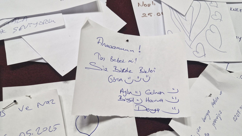 Kafenin giriş kısmındaki duvara asılan bu özel pano; sadece annelere değil, aynı zamanda sevgililere, eşlere ve tüm sevdiklerine duygu dolu mesajlar bırakmak isteyen ziyaretçilerden yoğun ilgi gördü. Ellerine kalemi alan misafirler, duygularını kâğıtlara dökerek panoya astı. Her bir yazı, Taş Bebek Kafe’de iz bırakan özel bir hatıra haline gelirken, hem ziyaretçiler hem de kafe çalışanları bu samimi etkinlikten büyük bir mutluluk duydu.