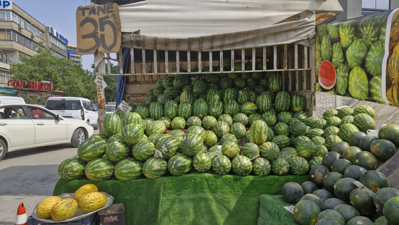 Altındağ ilçesinde yer alan İskitler Sanayi Sitesi'nde karpuz satan Osman Erden, "Şu an 25, 30, 50 liradan satışa sunduğumuz karpuzlarımız var. Bunların kilosuna baktığımız zaman bir kilogramı 6-7 liraya denk geliyor ortalama. Yeri geliyor bir kilogramı beş lira olmuş oluyor" dedi.