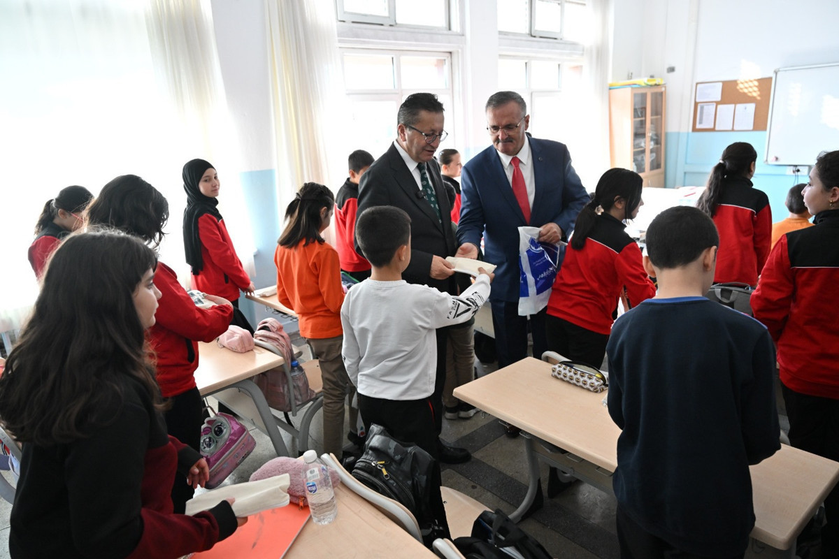 Başkan Tiryaki’den Cebeci Ortaokulu’na ziyaret: Öğrencilere hediyeler dağıtıldı