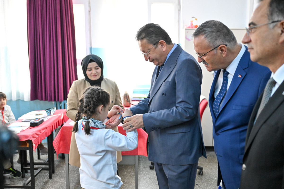 Çocukların sevinçle karşıladığı ziyarette Başkan Tiryaki, “Minik öğrencilerimizin yüzlerinin güldüğünü görmek bize yeter. Onlar mutlu olunca biz de mutlu oluyoruz” dedi.