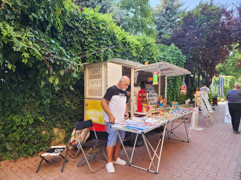 Ankara'nın Altındağ ilçesinde yer alan Hamamönü, tarihi dokusuyla yerli ve yabancı turistlerin dikkatini çekmeye devam ediyor. 22 yıldır Hamamönü'nde bulunan Nostaljik Tramvay'ı işleten Ressam Orhan Akbıyık, çizimlerini Hint kınası ile buluşturarak sanatını konuşturuyor.