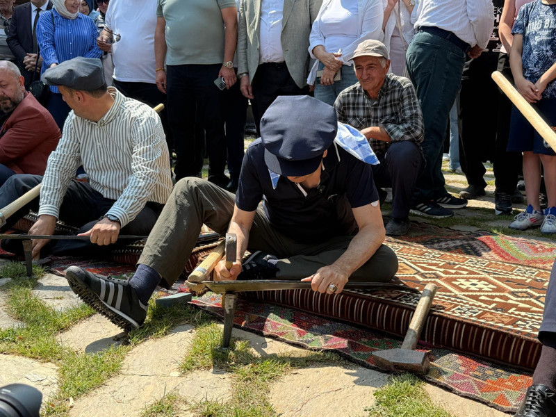 Halk oyunları ile başlayan program Altındağ Belediye Başkanı Veysel Tiryaki’nin tırpan bileylemesi ile devam etti.