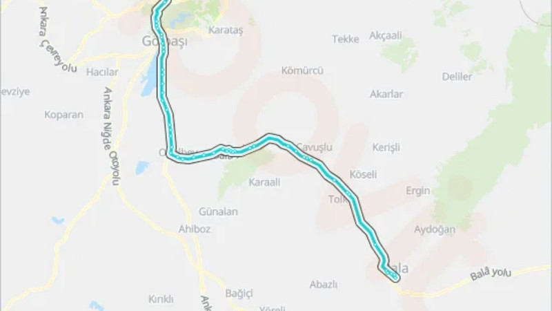 - Mamak Zirvekent bölgesinden Bala’ya gitmek isteyenler için yolculuk 181 dakika civarında,