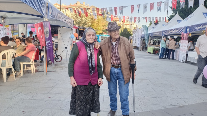 Festivalde kahve stantlarını gezenler arasında yaşlı bir teyze ile amca da vardı. Renkli yeleği ve bastonuyla teyzeyle, bastonuna dayanarak gülümseyen amcanın sevecen halleri dikkat çekti. Katılımcılar, onların pozitif enerjisiyle festival alanına ayrı bir renk kattığını söyledi.