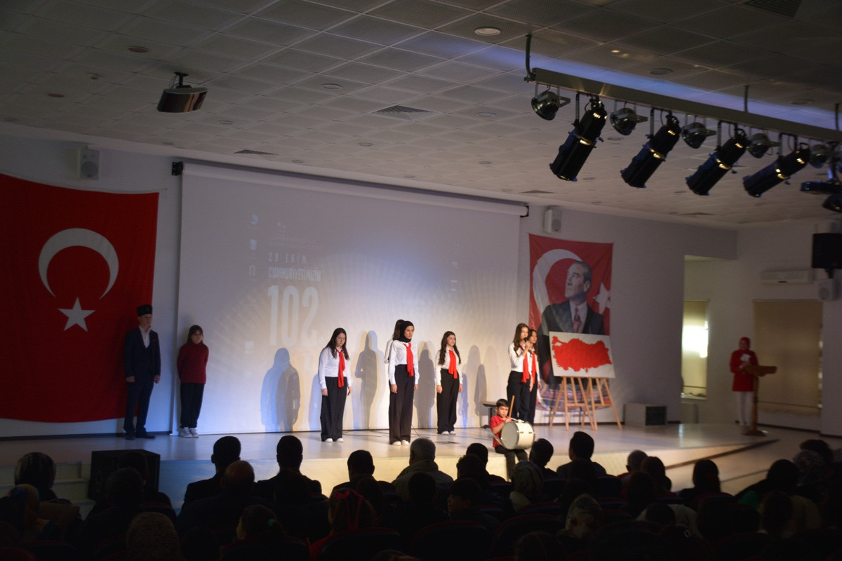 Çamlıdere’de kutlama programı Halk Eğitim Merkezi Konferans Salonu’nda düzenlendi. Kaymakam Soner Erol ve Belediye Başkanı Adem Ceylan’ın katıldığı törende Cumhurbaşkanı’nın mesajı okundu, ardından günün anlam ve önemine dair konuşmalar yapıldı. Kaymakam Erol, “Cumhuriyetimizin 102’nci yılı, milletimizin azim ve kararlılığının en güçlü göstergesidir.” dedi.