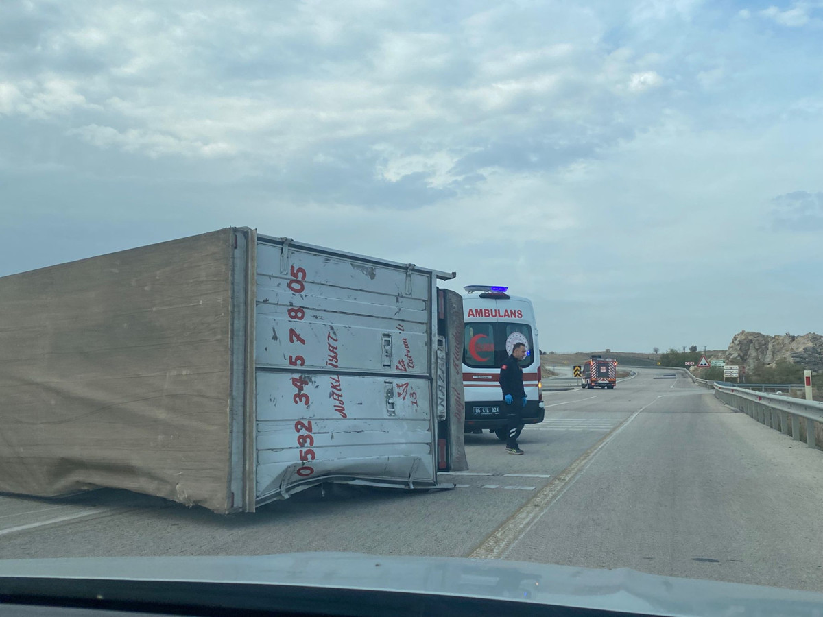 HAYMANA YOLUNDA NAKLİYAT KAMYONETİ DEVRİLDİ: EKİPLER OLAY YERİNDE