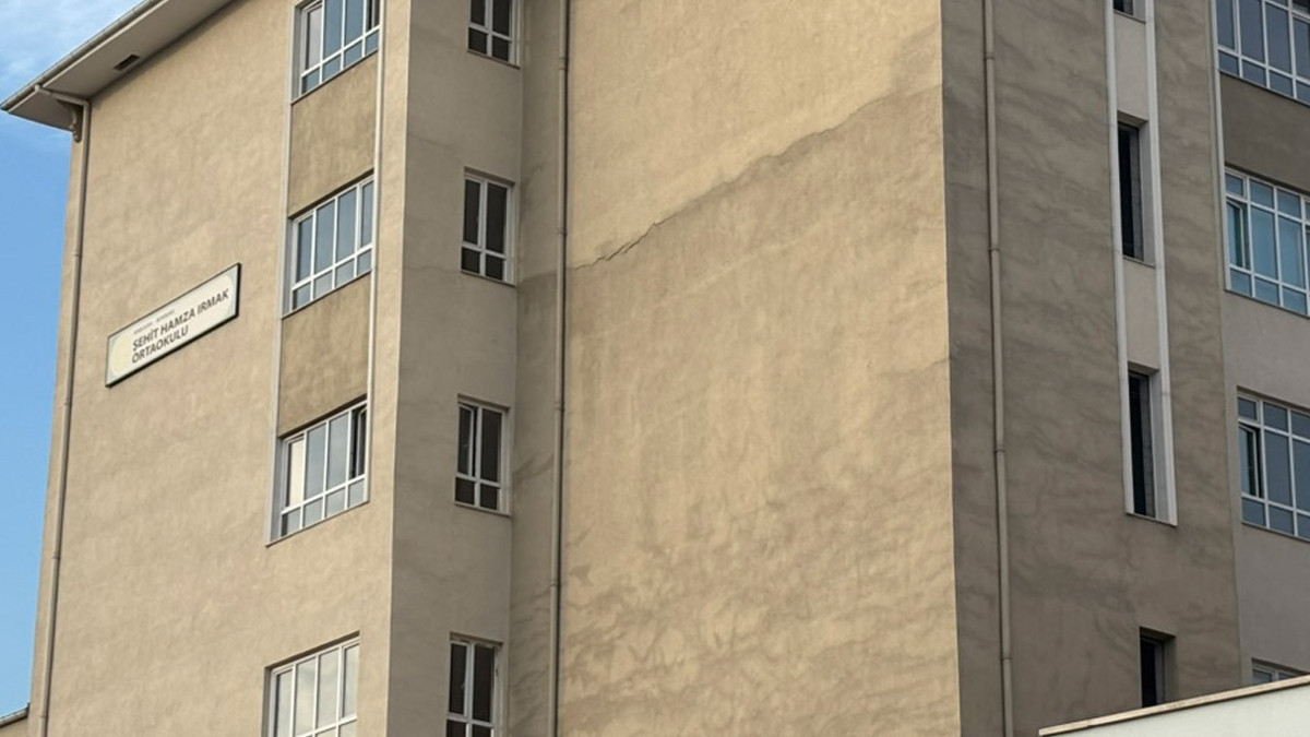 Ankara’nın Mamak ilçesinde bulunan Şehit Hamza Irmak Ortaokulu’nun dış cephesinde uzunluğu metrelerce uzayan bir çatlak benzeri iz vatandaşların dikkatini çekti. Binanın sıva yüzeyinde belirgin şekilde görülen çizgi, özellikle deprem hassasiyetinin arttığı bir dönemde öğrencilerde ve velilerde kaygı oluşturdu.
