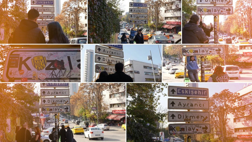 Ankara’da Kızılay’daki bir yön tabelası önünde başlayan “tabela fotoğrafı” akımı, gençlerin sıradan bir levhayı popüler bir çekim noktasına dönüştürmesiyle kısa sürede patladı.