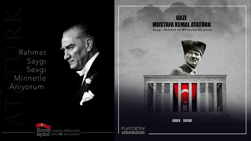 Bağımsız Ankara Milletvekili Koray Aydın, paylaşımında “Cumhuriyetimizin banisi, büyük devlet ve siyaset adamı, Türk milletinin kurtarıcı lideri Gazi Mustafa Kemal Atatürk’ü rahmet, minnet, saygı ve dualarla anıyorum.” ifadelerini kullandı. Aydın, Atatürk’ün gençliğe hitabesine atıfla “Ey Büyük Atatürk! Açtığın yolda, gösterdiğin hedefe durmadan yürüyeceğime ant içerim. Varlığım Türk varlığına armağan olsun.” sözlerine yer verdi. AK Parti Ankara Milletvekili Fuat Oktay, “Cumhuriyetimizin banisi Gazi Mustafa Kemal Atatürk'ü ebediyete irtihalinin 87. yılında saygı, minnet ve rahmetle anıyorum.” mesajını paylaştı. Parti grubundan Murat Alparslan ise, “O’nun aziz hatırası Türkiye Yüzyılı’na yürüyen milletimize daima ilham vermeye devam edecektir.” sözleriyle Atatürk’ün bıraktığı mirasın geleceğe yön verdiğini vurguladı.