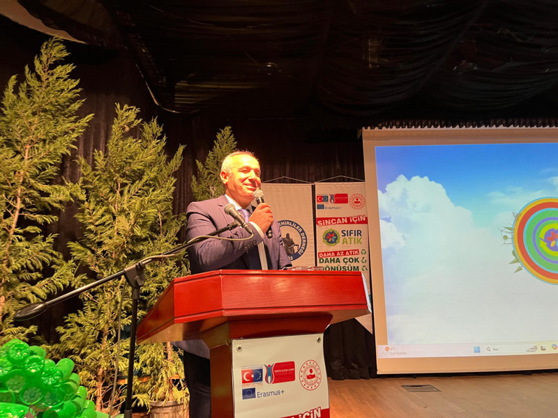 Projenin ilk adımı, bugün düzenlenen okul müdürleri toplantısında atıldı. Toplantıda, proje kapsamında okullarda yapılacak etkinlikler ve eğitim programları kararlaştırıldı. Sincan Belediye Başkanı Murat Ercan, sıfır atık konusunda ilçenin öncü bir rol üstlendiğini belirterek, “Göreve başladığımızda sıfır atık konusu Türkiye’de henüz çok yeniydi. Cumhurbaşkanımızın eşinin başlattığı sıfır atık seferberliğini duyduğumda, bu konuda bir şeyler yapmaya karar verdim. İlk yıllarda elimizde örnek bir model yoktu; ancak büyük bir azimle çalışarak Türkiye’nin bu alandaki ilklerinden olduk. Bugün kişi başına düşen atık miktarını 1,2 kilogramdan 800 grama düşürdük. Bu, Sincan’ın yaklaşık 600 bin nüfusunun üçte birinin hiç atık çıkarmadığı anlamına geliyor.” Başkan Ercan, sıfır atık çalışmalarını bir yaşam biçimine dönüştürdüklerini ifade ederek, “Eko çiftlik kurduk, burada atıklardan biyogaz üretiyoruz, sokak hayvanları için mama üretiyoruz ve kompostla yetiştirdiğimiz meyve-sebzeleri ihtiyaç sahiplerine ulaştırıyoruz” dedi.