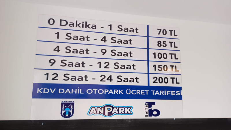 Anpark Otoparkı'nda ise ücretlendirme şu şekilde;