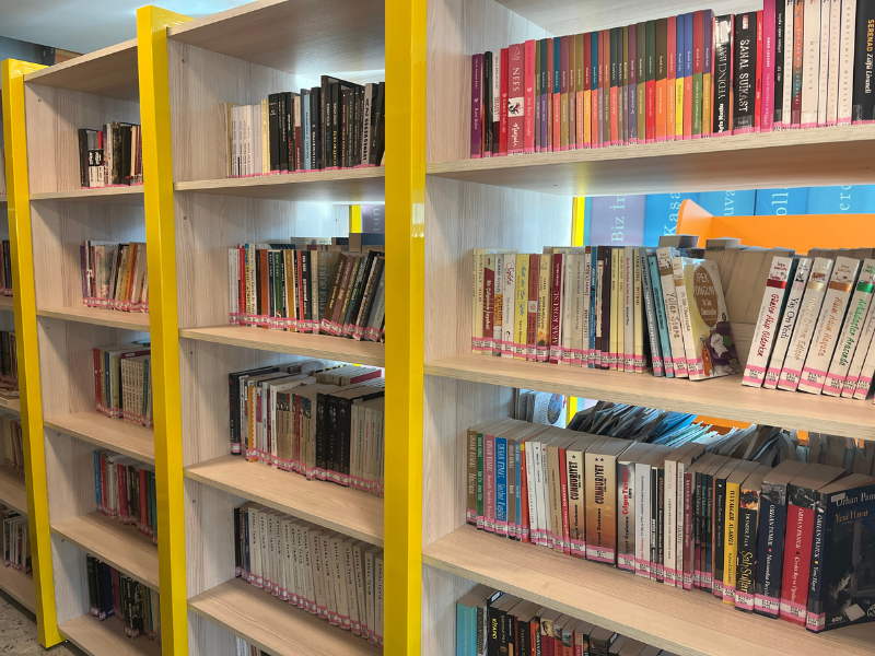 Kütüphane, geniş bir kitap yelpazesi sunuyor. Çocuk kitaplarından, tarih, roman, felsefe, psikoloji, sosyoloji, din, kişisel gelişim kitaplarına kadar pek çok kategoride kitap bulunuyor. Nobel ödüllü kitaplar da kütüphanede yer alıyor. 5 binin üzerinde kitap bulunan kütüphanede, yaş ve ilgi alanına hitap eden kaynak bulmak mümkün kılıyor.