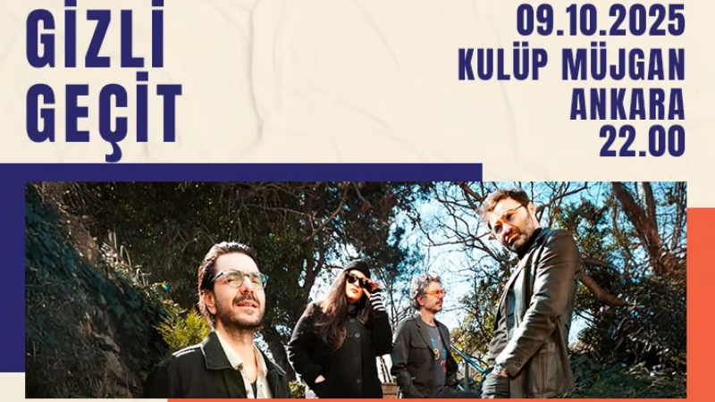 9 Ekim 2025 Perşembe günü saat 22’de Ankara’nın sevilen mekanı Kulüp Müjgan, alternatif rock grubu Gizli Geçit’in büyüleyici performansına ev sahipliği yapacak. 2018’de kurulan grup, doğaçlama ritimleri, karanlık ve umut dolu melodileriyle dinleyicileri kendine özgü dünyasına çekecek. 2025 sonunda yayımlanacak ilk albümlerinden henüz duyulmamış şarkıları ilk kez seslendirecek olan Gizli Geçit, Serkan Ertekin (vokal ve gitar), Ozan Musluoğlu (bass ve synth bass), Hakan Ertekin (davul) ve Maya Muz (keyboard) kadrosuyla sahnede olacak.