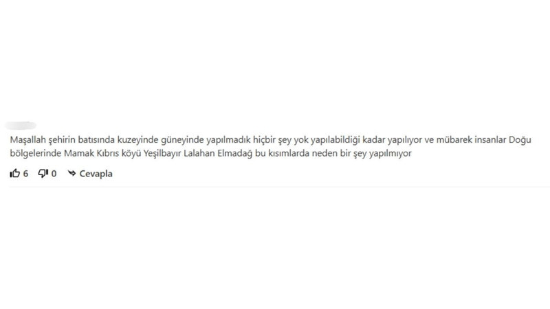 Bazı yurttaşlar ise yatırımın yer seçiminden yakındı: “Çankaya bölgesine sürekli yatırım yapılıyor, doğu bölgeleri ise ihmal ediliyor. Mamak, Kıbrısköy, Lalahan, Elmadağ gibi yerlere de projeler yapılmalı” yorumları yapıldı.