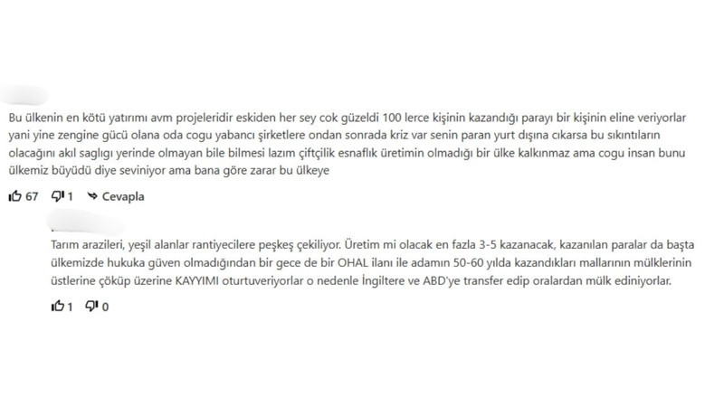 AVM yatırımlarının ülke ekonomisine zarar verdiğini savunan vatandaşlar ise şu görüşlere yer verdi: