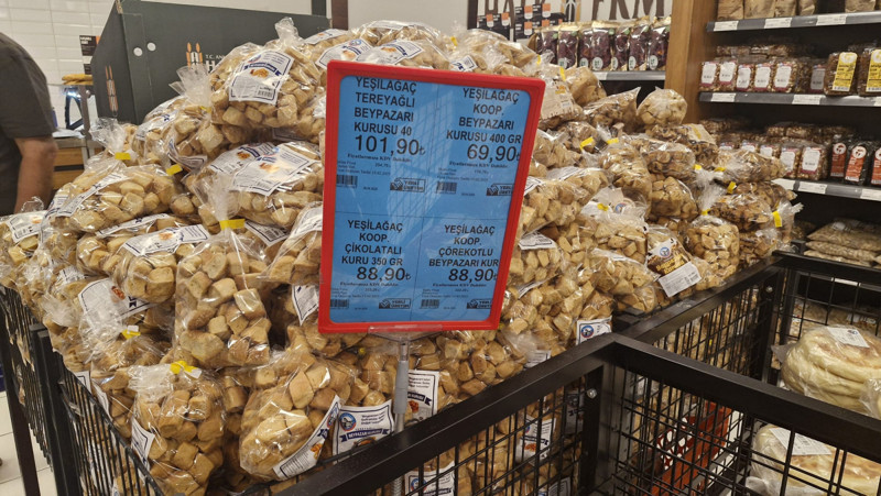 Başkent Market raflarında fiyatlar da piyasa koşullarına göre makul seviyelerde kalıyor. Örneğin, yöresel lezzetlerden Beypazarı kurusu 70 TL’den başlayıp kalite ve ambalajına göre 102 TL’ye kadar çıkarken, Kızılcahamam’dan gelen bir kilogramlık tarhana 110 TL’den satışa sunuluyor. 350 gramlık makarnalar çeşidine göre 82,25 TL ile 87,50 TL arasında alıcı buluyor. Yumurta 140 TL’den, 900 gramlık süzme yoğurt ise 130 TL’den satılıyor.