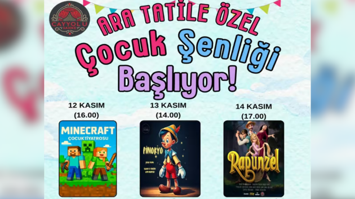 Okulların ara tatile girmesiyle birlikte Ankara'da Çocuk Tiyatro Şenliği başlıyor. Şenliğin en dikkat çeken etkinliklerinden biri olan "Minecraft Oyunu", 12 Kasım Çarşamba günü Ankara Çayyolu Sahne'de minik izleyicilerle buluşacak. Saat 16'da başlayacak olan eğlence, müzik ve tiyatro dolu bu etkinlik için özel bir kampanya da sunuluyor; gösteriye çocuklar ücretsiz katılırken, sadece veliler bilet alacak.