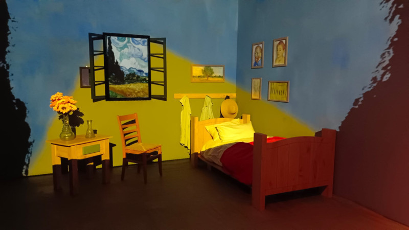 Serginin slow alanı yaklaşık 350 metrekare büyüklüğünde ve duvarlar projeksiyonlarla kaplanmış. Duvarlar birer bariyer değil, dijital dünyalara açılan pencereler olarak tasarlanmış. Fuaye alanında ise sanat tarihçisi eşliğinde Van Gogh’un yaşamı ve sanatı hakkında bilgiler veriliyor. Van Gogh’un odası projeksiyonlarla yeniden yaratılırken, duvarlar gece ve gündüz değişiyor; ressamın renk paletlerine göre farklı tonlar sergileniyor.