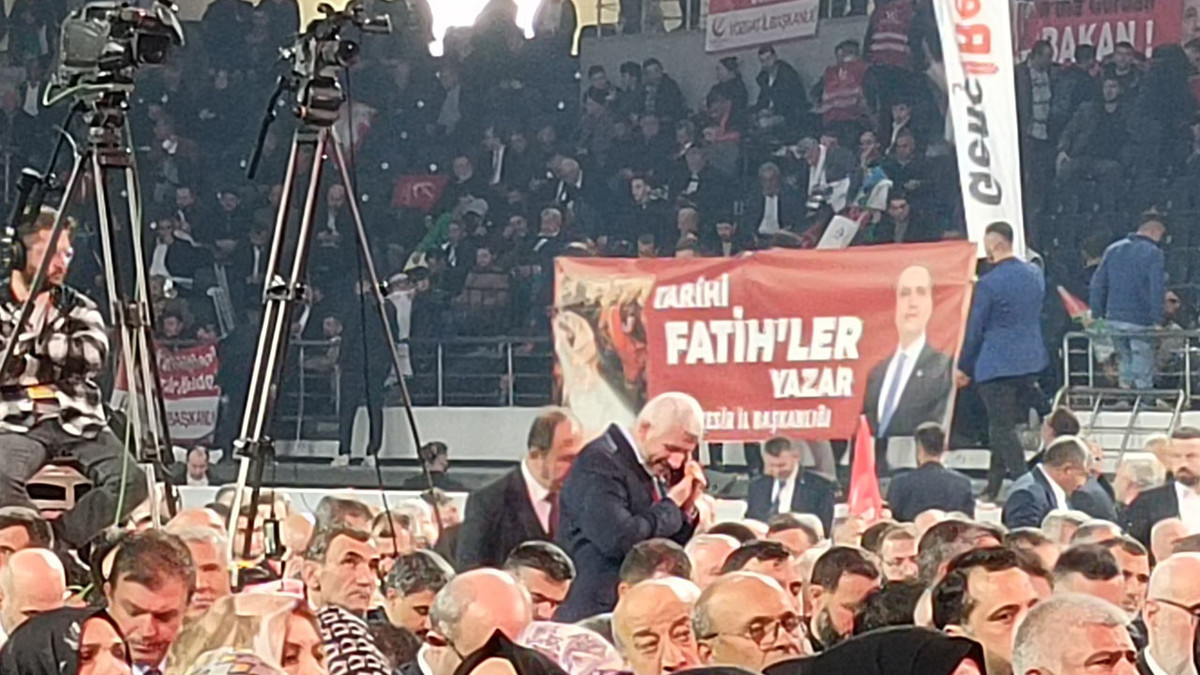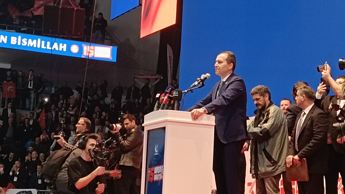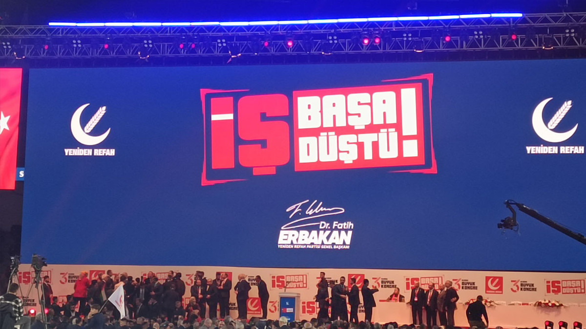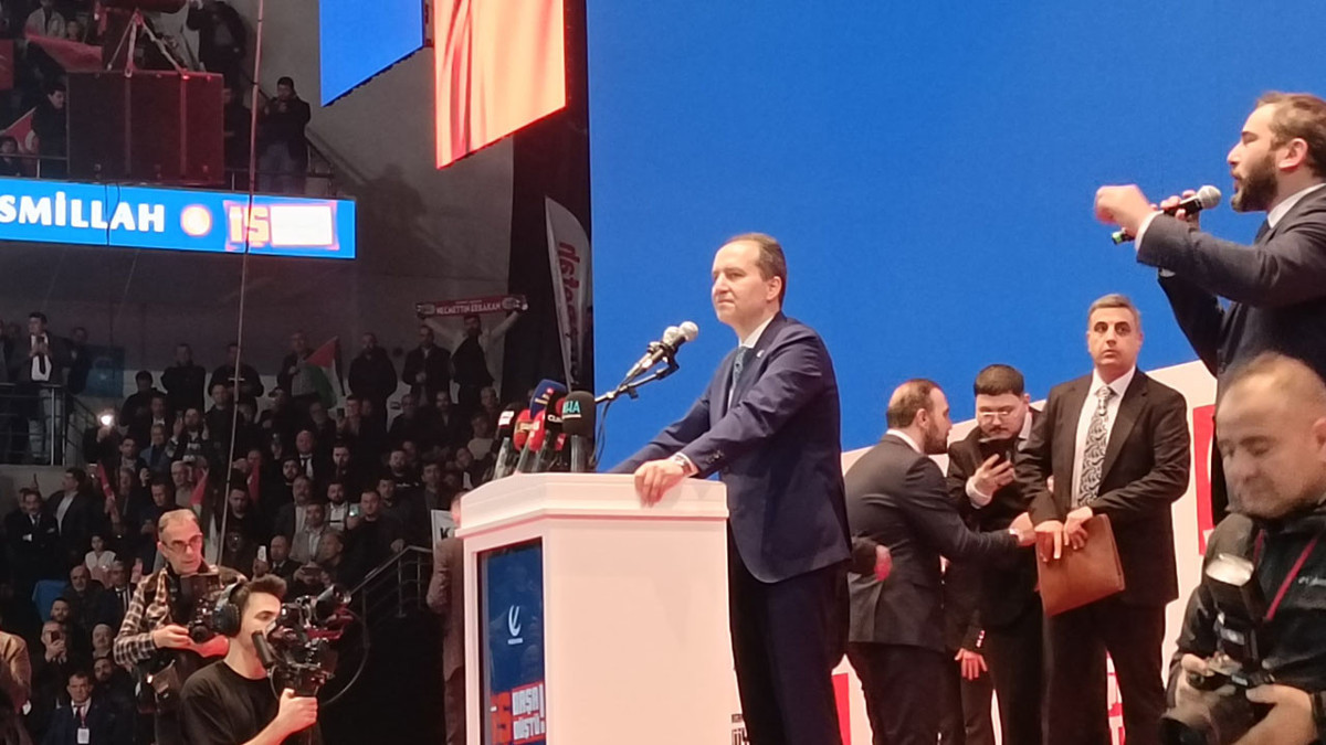 Yeniden Refah Partisi Genel Başkanı Fatih Erbakan, Ankara Spor Salonu’na telefonlarının ışıklarını yakan binlerce kişinin alkışları ve "Başkan Erbakan, Mücahid Erbakan" sloganlarıyla karşılandı. Salonda yükselen coşkuyu artıran anons ekibi, Erbakan’ı şu sözlerle takdim etti: “Sen Doğu Türkistan’sın, Gazze’sin, Kudüs’sün! Sen zalimin hesaplarını yağmur gibi dağıtansın! Sen beklediğimiz Refah’sın!"