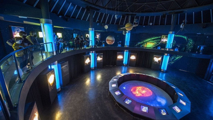 Uzay ve Astronomi Alanı: Gezegen maketlerinden uzay istasyonu simülasyonuna kadar birçok etkileşimli içerik bulunuyor.