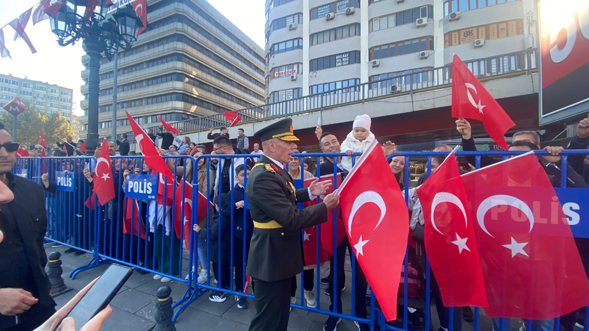 Ankaralı vatandaşlar, sabahın erken saatlerinden itibaren ellerinde Türk bayraklarıyla Kızılay Güvenpark meydanını ve Türkiye Büyük Millet Meclisi (TBMM) yürüyüş güzergâhını doldurdu. Askerî birlikler, bando takımları, öğrenciler, Kıbrıs Gazileri, 15 Temmuz Gazileri ve sivil toplum kuruluşlarının da katıldığı yürüyüş, renkli görüntülere sahne oldu. Cumhuriyet uğruna mücadele vermiş olan gazilerin kortejde yer alması vatandaşlardan büyük alkış aldı.