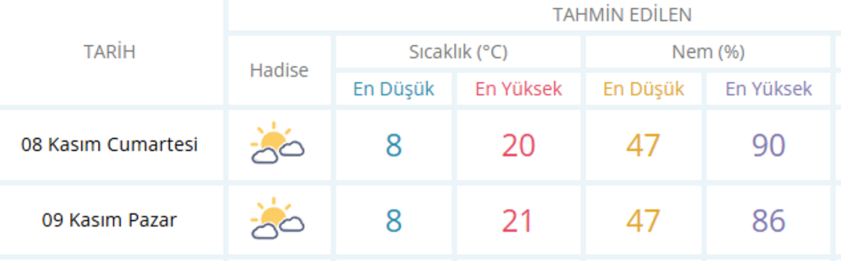 Ankara'da 8-9 Kasım tarihlerinde, başkent sakinlerini hafif bir sonbahar havası bekliyor. Sıcaklıklar 8 derece ile 21 derece arasında değişecek, nem oranı ise gün boyu biraz dalgalanacak, ancak yağış beklenmiyor.