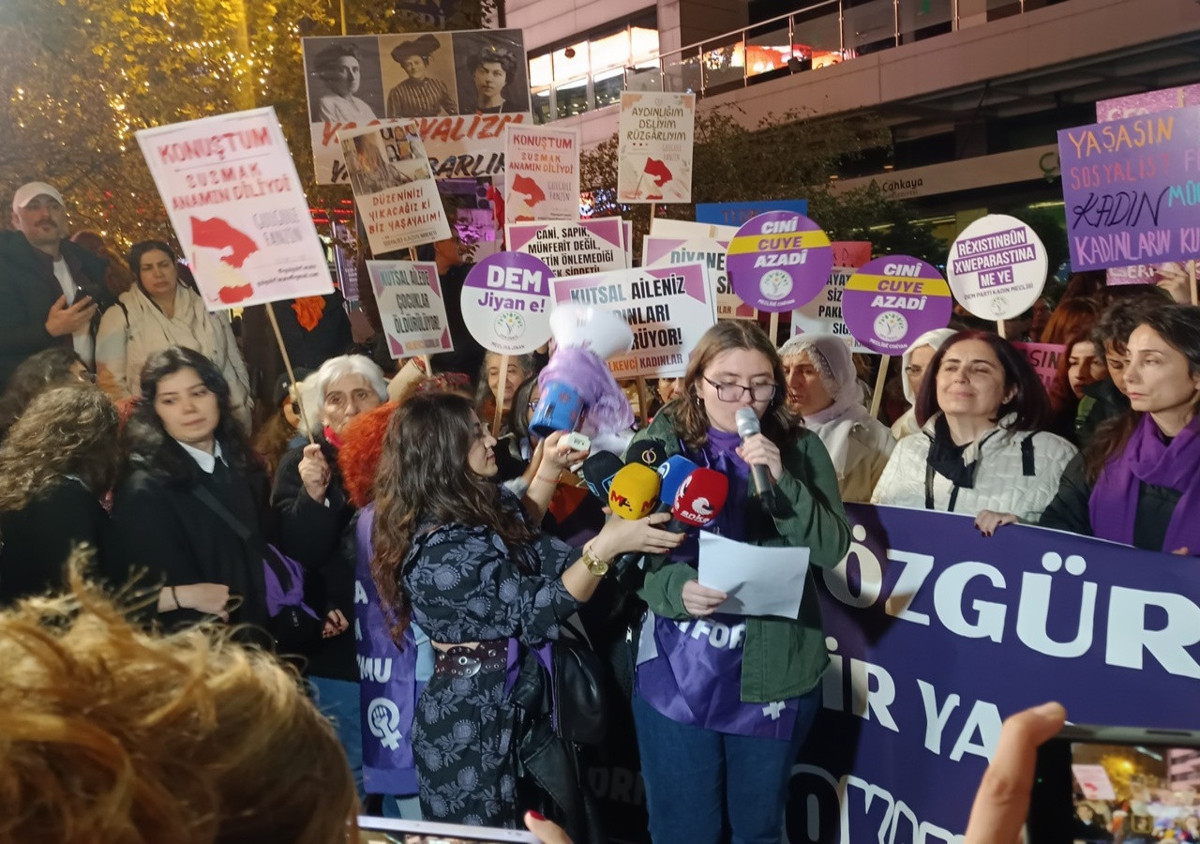“Erkek egemen sistem, evde, işte, okulda, sokakta ve cezaevlerinde kadınları baskı altına almaya çalışıyor. Bu şiddet devlet politikalarıyla, yargının cezasızlık yaklaşımıyla ve medyanın cinsiyetçi diliyle besleniyor. İstanbul Sözleşmesi’nden çıkılmasının ardından 6284 sayılı yasa da etkin şekilde uygulanmıyor. Kadınları koruyacak mekanizmalar işletilmiyor.”