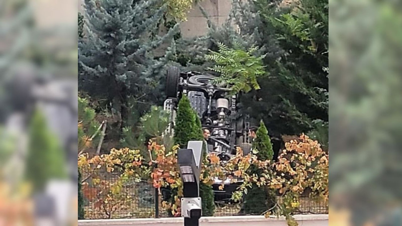 Ankara'da korkutan kaza: Kontrolden çıkan araç taklalar atarak boşluğa düştü!