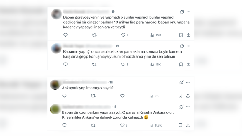 Osman Gökçek'in "israf" ve "vurgun" iddiaları, akıllara Gökçek ailesinin Ankara'ya mirası olan ve milyarlarca lira kamu zararının tespit edildiği Ankapark projesini getirdi. Sosyal medyada çok sayıda kullanıcı, Gökçek'in eleştirilerine tepki göstererek, Hıdırlıktepe'deki projeyi eleştirmeden önce, şu anda çürümeye terk edilmiş dinozor maketlerinin ve 801 milyon dolarlık (bugünkü kurla yaklaşık 26 Milyar TL) Ankapark zararının hesabının verilmesi gerektiğini hatırlattı.