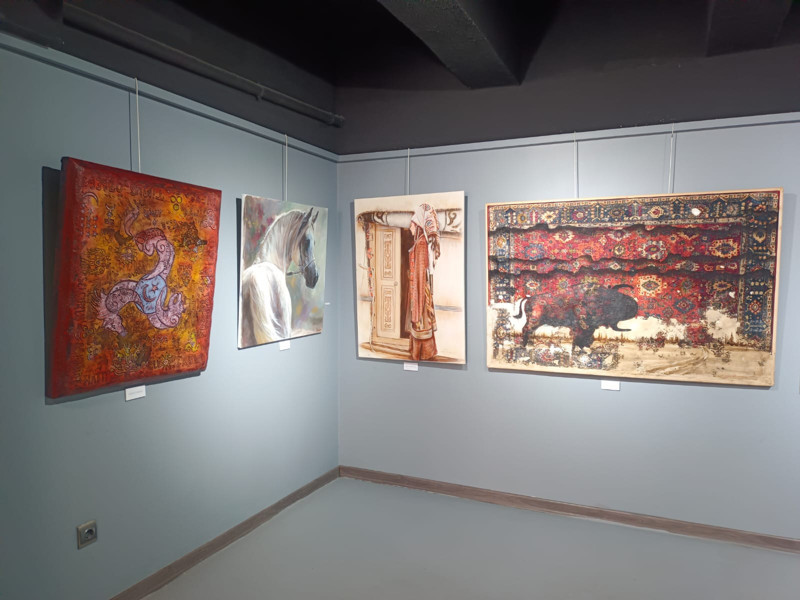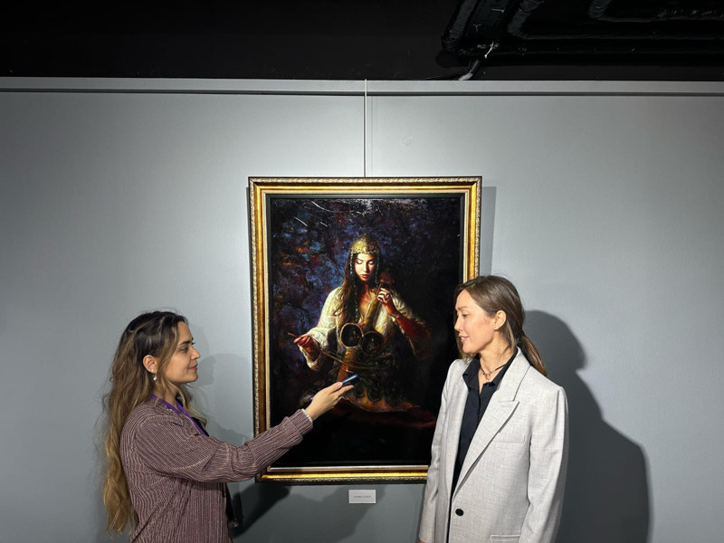 Sergide eseriyle yer alan Kazakistanlı ressam Zamira Zeren, “Kopuz çalan kadın” temalı tablosunda Kazak kültürünün ruhunu ve müziğin birleştirici gücünü yansıttığını belirtti.