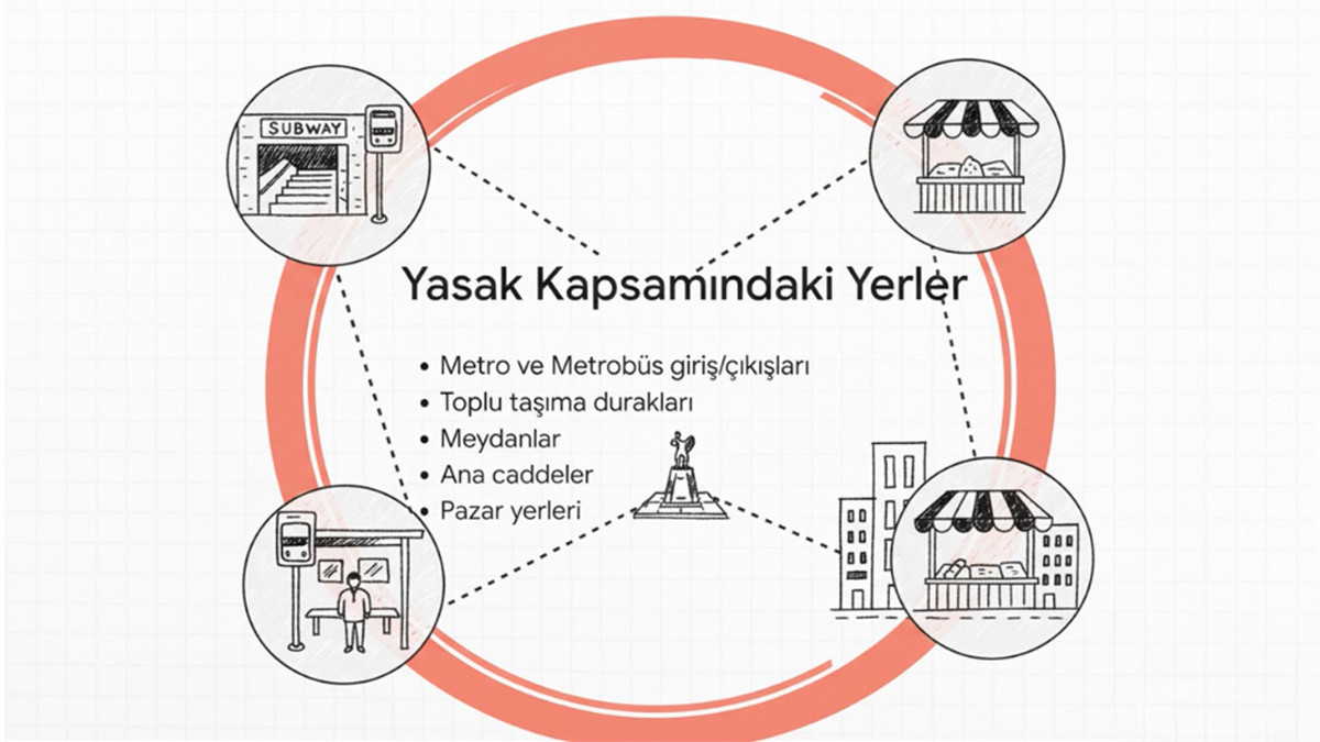 Valiliğin yaptığı açıklamada, kentte sesli yardım toplama faaliyetlerine hiçbir koşulda izin verilmeyeceği vurgulandı. Metro ve diğer toplu taşıma hatlarının çevresiyle birlikte meydan, cadde ve pazar yerlerinde güvenlik riski taşıdığı değerlendirilen tüm stantların kaldırıldığı, bu alanlarda yeniden kurulmalarına da izin verilmeyeceği ifade edildi.