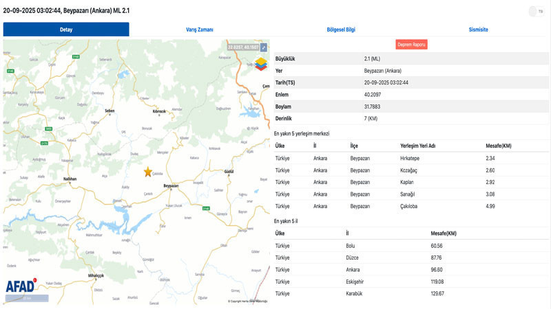 İşte başkentte son 24 saat içinde yaşanan depremin AFAD ve Kandilli Rasathanesindeki detaylı bilgileri...