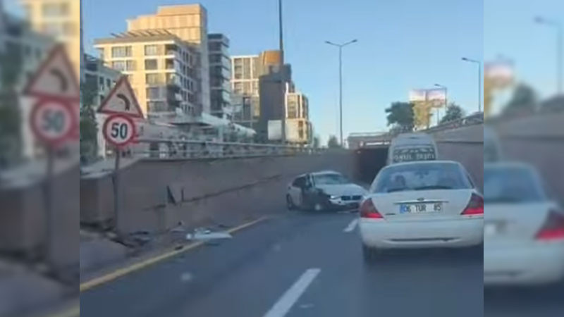 Doğukent Bulvarı'nda, TRT istikametinden Turan Güneş'e bağlanan tünel girişinde meydana gelen kazada bir araç duvara çarptı. Çarpmanın etkisiyle iki kez takla atarak durabilen aracın sürücüsü yaralandı. Çevredeki vatandaşların ihbarı üzerine olay yerine ambulans sevk edildi.