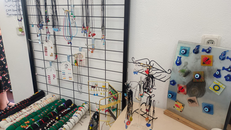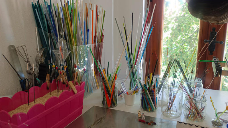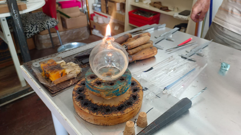 Fatih Usta’nın uzmanlık alanı üfleme cam sanatı. Efetra cam borularıyla küpe, bileklik, kolye gibi ürünler yapıyor. Hem içi boş hem de dolu cam objeler üzerine çalışıyor. Kullandığı malzemeler arasında düz cam, renkli cam ve boru camları bulunuyor.