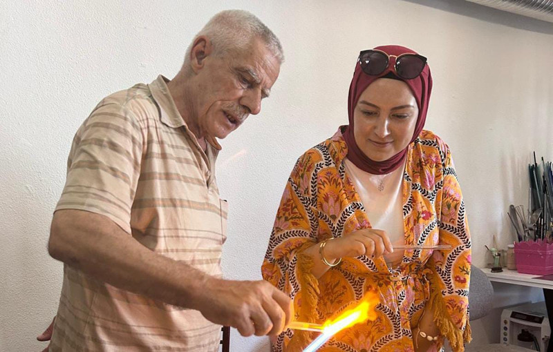 “Camla çalışmanın zevki çok farklı. Katı bir maddeyi eritip istediğiniz şekle getirebilmenin keyfi bambaşka. Bir de sabrı öğreniyorsunuz. Camın belirli bir erime noktası var. O noktaya gelene kadar beklemek zorundasınız. Sabırla çalışır, sevgi katarsanız ortaya çok güzel işler çıkar.”