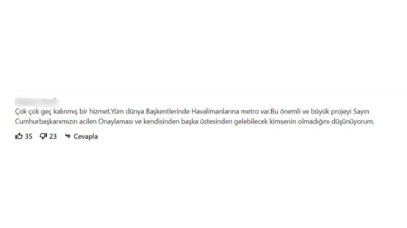 Bazı yorumlarda ise “Havalimanına 25 dakikalık ulaşım kulağa güzel geliyor ama bu hızla giderse o metroya binmek zor.” değerlendirmesi yapıldı.