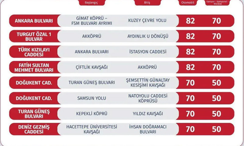 Yeni düzenlemeyle bazı yollarda hız sınırının 50 km/saat olarak belirlenmesi de tartışma konusu oldu. Yorum yapanlar arasında “Anadolu Bulvarı, Ümitköy yolları gibi çift şeritli yollarda en az 70-90 km/saat olmalı” diyenler olduğu gibi, “Aracın hızı ne kadar düşükse, yakıt tüketimi artıyor. Bu da devlete daha çok vergi kazandırıyor” ifadeleriyle uygulamayı dolaylı yoldan eleştirenler de vardı.