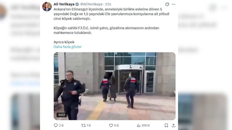 Ankara'nın Etimesgut ilçesinde iki küçük kardeşi yaralayan pitbull saldırısı sonrası, köpeğin sahibi tutuklandı. Kamuoyunda büyük infial uyandıran olayda, mağdurların tedavisi devam ederken, daha önce 12 kez şikayet edildiği iddia edilen köpeğe neden müdahale edilemediği sorusu gündeme geldi.