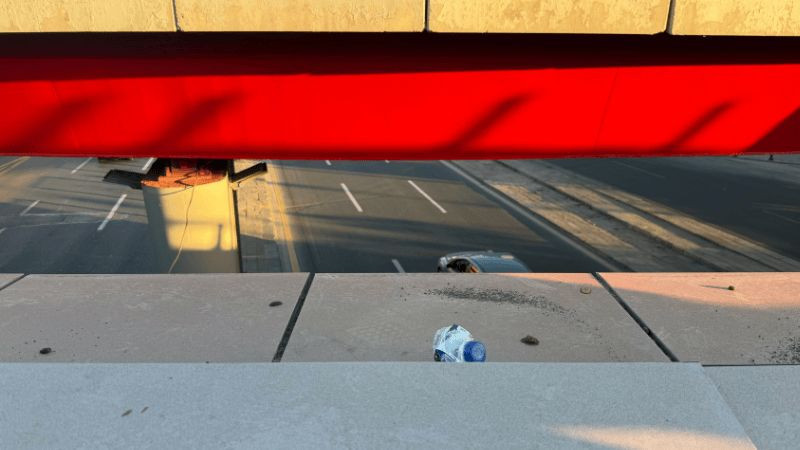Dördüncü görüntü Sıhhiye Köprüsü’nden. Köprüdeki otobüs durağının çevresindeki vatandaş tarafından atılmış çöp yalnızlığını korurken düşme riski barındırması ile yürek hoplatıyor. Köprünün altında seyir halinde olan bir araca düşmesi durumunda sürücünün odağını değiştirme riski, çevre bilincinin önemini gözler önüne seriyor.
